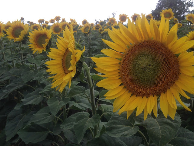 Kilkadziesiąt metrów od mojego domu w ubiegłym roku, czarodziejskim zapachem i urodą wabiła facelia. W tym roku, mój były uczeń, operatywny gospodarz coś nowego posiał. Początkowo myślałam, że będzie to kukurydza, jak kilka lat temu, ale gdy nasionka zaczęły wschodzić, wiedziałam już, że to słonecznik.